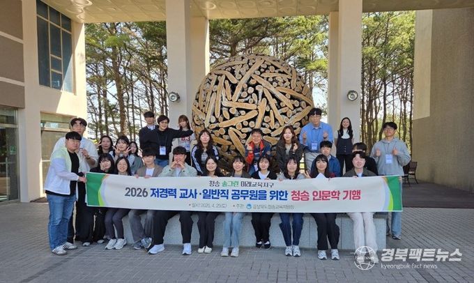 경북팩트뉴스 남유신 기자 | 청송교육지원청은 2026년 4월 25일, 청송 관내 저경력 교사와 일반직 공무원 30여명을 대상으로 청송 인문학 기행을 실시했다. 이번 인문학 기행은 2026년 청송 솔그린 미래교육지구의 신규 사업으로 청송 관내에 근무하는 젊은 교사와 일반직 공무원이 청송의 인문·지리·역사를 알고, 특화된 예술 체험과 문화재 탐방을 통해 학교를 비롯한 여러 장소에서 학생에게 더 좋은 수업과 행정을 지원하기 위해 진행됐다.