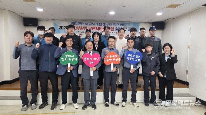 경북팩트뉴스 남유신 기자 | 고령군은 4월 27일 8시'안부살핌 우편서비스 사업'의 효과적인 추진을 위해 고령우체국 집배원을 대상으로 고독사 및 사회적 고립의 개념과 현황, 개인정보 보호 등 직무교육을 실시했다.