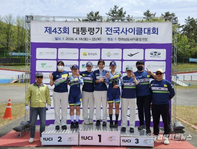 경북팩트뉴스 남유신 기자 | 상주시청 여자 사이클팀이 전남 나주시 일원에서 열린 ‘제43회 대통령기 전국사이클대회’에서 종합준우승과 함께 최우수지도자상(이형주 코치)을 차지했다.