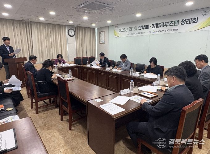 경북팩트뉴스 남유신 기자 | 경북교육청은 28일 본청 505호 회의실에서 반부패・청렴옴부즈맨 6명이 참석한 가운데 ‘2026년 제1회 반부패・청렴옴부즈맨 정례회’를 개최했다고 밝혔다.