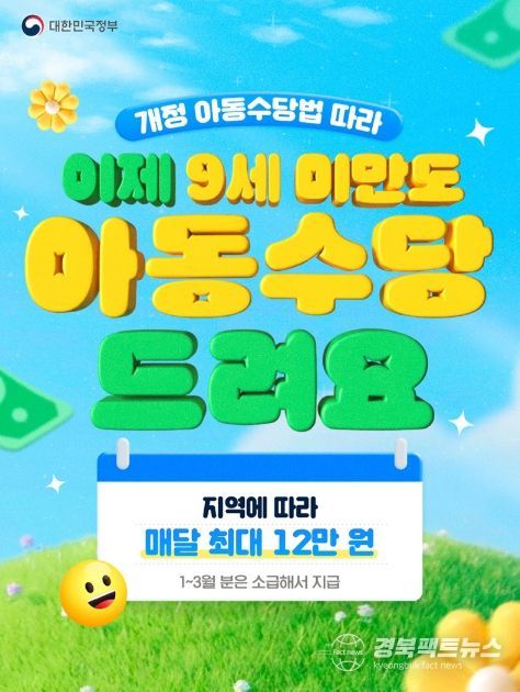 경북팩트뉴스 이경원 기자 | 개정 아동수당법 따라 이제 9세 미만도 아동수당 드려요.