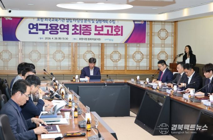 경북팩트뉴스 남유신 기자 | 포항시는 28일 경상북도, 대구경북경제자유구역청이 참석한 가운데 ‘외국교육기관 설립 타당성 조사 및 실행계획 수립 연구용역’ 최종보고회를 개최했다.