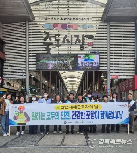경북팩트뉴스 남유신 기자 | 포항시는 28일 ‘산업재해근로자의 날’을 맞아 죽도시장 일원에서 유관기관과 함께 시민과 근로자를 대상으로 산업재해 예방 및 안전문화 확산을 위한 합동 캠페인을 실시했다.