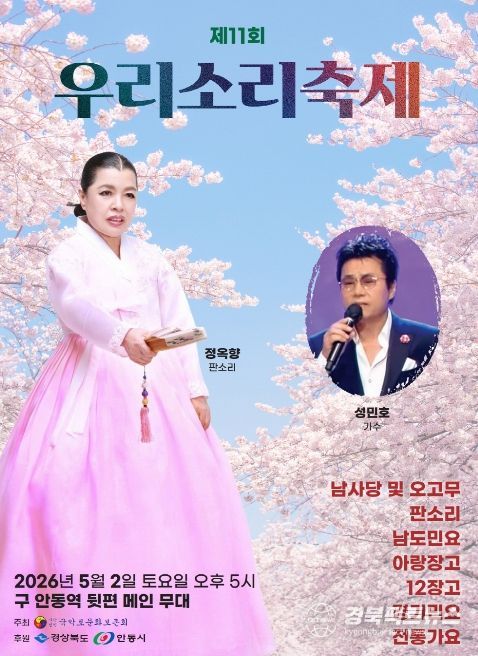 경북팩트뉴스 남유신 기자 | 사단법인 국악로문화보존회가 주최․주관하는 '제11회 우리소리 축제'가 오는 5월 2일 오후 5시 안동 탈춤공원 무대에서 개최된다.
