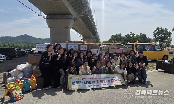 경북팩트뉴스 조현묵 기자 | 구미시니어클럽은 28일 낙동강 체육공원에서 구미시정부지원어린이집협의회(회장 조현정)로부터 재활용품 약 2,000kg을 기증받았다.