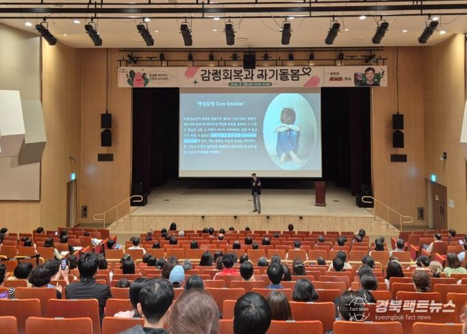 경북팩트뉴스 남유신 기자 | 김천시립율곡도서관은 4월 28일 율곡홀에서 ‘일상을 치유하는 인문학 아카데미’의 첫 강연으로 문요한 정신건강의학과 의사를 초청해 ‘감정회복과 자기돌봄’을 주제로 강연회를 개최했다.