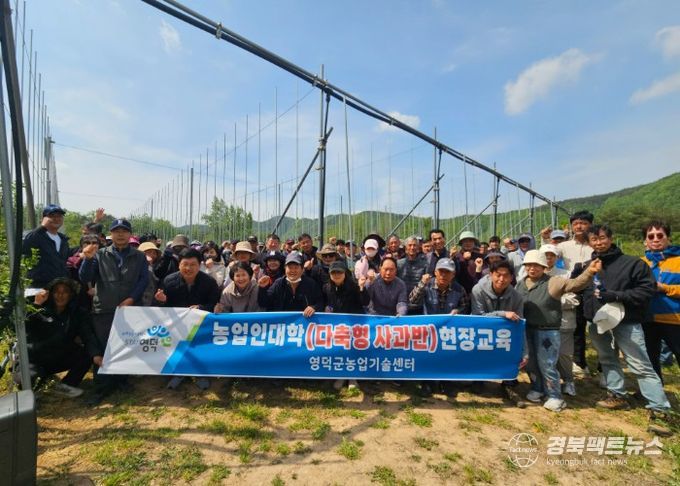 경북팩트뉴스 남유신 기자 | 영덕군은 관내 사과 재배 농가의 기술 역량과 전문성을 강화하기 위해 운영하는 ‘2026년 농업인 대학 다축형 사과반’의 현장 교육을 지난 28일 진행했다.