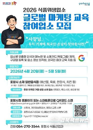 경북팩트뉴스 남유신 기자 | 포항시는 외국인 고객 응대 역량을 강화하기 위해 ‘2026년 식품위생업소 글로벌 마케팅 교육’ 참여 업소 30개소를 모집한다.
