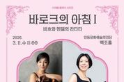 경북팩트뉴스 남유신 기자 | 안동문화예술의전당의 올해 브런치 콘서트는 바로크에서 근현대에 이르기까지, 클래식 음악이 걸어온 시간을 따라가는 시대별 시리즈로 구성된다. 매월 둘째 주 수요일 아침에 진행되는 이번 시리즈의 첫 무대, 〈바로크의 아침Ⅰ – 바흐와 헨델의 칸타타〉가 오는 3월 11일 오전 11시 안동문화예술의전당 백조홀에서 열린다. 바로크 시대를 대표하는 작곡가 요한 제바스티안 바흐와 게오르크 프리드리히 헨델의 작품을 통해 바로크 음악 특유의 정교한 구조와 풍부한 선율, 섬세한 표현을 만날 수 있다. 연주는 바로크 오보에 신용천, 바로크 바순 김혜민을 중심으로 하프시코드 아렌트 흐로스펠트가 함께하는 ‘서울바로크 앙상블’과 소프라노 윤지가 참여해 바로크 특유의 섬세한 표현과 음색을 선보인다. 특히 바로크 관악기의 부드러우면서도 깊이 있는 음색과 하프시코드의 섬세한 화성이 어우러져 당시 음악의 음향적 특징을 생생하게 전달할 예정이다. 또한 이준형 평론가가 해설로 참여해 작품의 배경과 음악적 특징을 쉽고 흥미롭게 풀어내며, 클래식 음악을 처음 접하는 관객부터 애호가까지 누구나 부담 없이 공연을 즐길 수 있는 시간이 될