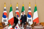 경북팩트뉴스 황혜경 기자 | 이재명 대통령은 19일 한-이탈리아 정상회담에서 "과학강국으로서의 이탈리아의 전통적인 강점 그리고 기술강국인 대한민국의 핵심 DNA가 힘을 모으면 양국이 큰 시너지를 창출할 수 있을 것"이라며 양국 협력 확대를 강조했다. 특히"기후위기를 포함한 글로벌 도전과제에도 양국이 공동 대응하며 가치공유국으로서 협력의 저변을 넓혀가자"고 제안했다. 이 대통령은 이날 오전 청와대에서 조르자 멜로니 이탈리아 총리와 정상회담을 갖고 "과학기술과 우주항공, 방산 등 첨단산업 분야에서 양국 간 협력은 계속 늘어나고 있다. 양국 협력 잠재력에는 한계가 없다고 느낄 정도"라며 이 같이 말했다. 이 대통령은 "이탈리아 총리로서는 19년 만에 우리나라를 방문해 주셨고, 신정부 출범 이후 처음 방한하는 유럽 정상"이라며 "청와대로 복귀한 뒤 첫 방문 정상이라는 점에서도 더욱 뜻깊다"고 밝혔다. 이 대통령은 양국 관계의 역사적 인연을 언급하며 "한국과 이탈리아는 2년 전 수교 140주년을 맞은 정말 오랜 친구"라며 "6·25전쟁 당시 유엔 회원국도 아니었던 이탈리아가 의료지원부대를 파견해 대한