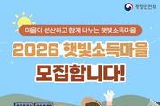 경북팩트뉴스 이경원 기자 | 마을이 생산하고 함께 나누는 햇빛소득마을 2026 햇빛소득마을 모집합니다! 마을 주민들이 직접 태양광 발전소를 운영하며 수익을 창출하고, 이를 마을 복지와 주민 소득으로 환원하는 에너지 자립 모델인 '햇빛소득마을' 사업이 전국적으로 확대됩니다. 주요 내용 ① ■ 모집 및 신청 일정 - 1차 모집기간: 2026.3.31.(화)~5.31.(일) - 2차 모집기간: 2026.3.31.(화)~7.31.(금) · 공모대상: 마을에서 태양광 발전 사업을 하려는 마을 공동체(협동조합 또는 사회적협동조합) · 지원규모: 500개 이상 ※ 사업여건에 따라 변동 가능 · 신청방법: 마을 공동체에서 사업계획서 작성 → 기초 지방정부(시·군)가 공문으로 제출 · 문의: 각 시·군 햇빛소득마을 접수부처 · 결과발표: 기초 지방정부(시·군)를 통해 통보 - 1차 발표: 2026.7.31.(금) 예정 - 2차 발표: 2026.9.30.(수) 예정 자세한 내용은 행정안전부 누리집에 게시된 사업 공고문에서 확인할 수 있으며, 햇빛소득마을