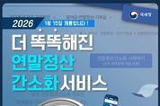 경북팩트뉴스 이경원 기자 | 더 똑똑해진 연말정산 간소화 서비스 2026년 1월 15일 개통합니다! ■ 더~욱 새로워진 연말정산 간소화 서비스 기존 42개 자료+ 3개 자료 추가 1. 발달 재활 서비스 이용 증명 2. 장애인 활동 지원 급여 본인 부담금 자료 3. 체육시설 이용료 자료 ■ 더~욱 정교해진 소득 기준 초과 부양가족 명단 제공 소득 금액 100만 원 초과 부양가족에 대한 정보 연말정산 간소화 서비스 자료 조회 화면에서 안내 * 근로소득만 있는 경우 총급여 500만 원 - 소득 기준 초과 부양가족 내역 * 자세한 사항은 국세청 블로그를 참고해주세요! ■ AI 전화 챗봇 상담 - 국세 상담센터: ☎126→0번→0번(상담사 또는 AI 상담사 연결) - 세무서: 대표번호→2번→6번(AI 상담사 연결) (AI 상담사) · 주민등록번호 입력 후 본인인증 연말정산 간소화 자료 일괄 제공 현황, 부양가족의 간소화 자료 제공 동의 현황 등 · 생성형 AI 챗봇 상담 시범 운영 경로→홈택스 접속→홈택스 퀵메뉴→챗봇 상담 클릭 *홈택스 ■ 연말정산 유