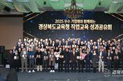 경북팩트뉴스 남유신 기자 | 경북교육청은 5일 경주시에 있는 라한셀렉트 경주에서 직업계고 학생 취업을 지원하는 58개 기업체와 함께 ‘2025 직업교육 성과공유회’를 개최했다고 밝혔다. 직업교육 성과공유회는 경북 직업교육에 적극 참여한 우수 기업체와 함께 그동안의 직업교육 성과를 공유하고, 직업계고 학생 채용에 이바지한 기업에 감사패를 수여하고 우수사례 발표를 통해 고졸 취업을 활성화하기 위해 마련됐다. 2025년 감사패 수여 기업체는 △현장실습 선도기업 31개 및 참여기업 3개 △산학일체형 도제학교 사업에 참여한 기업 14개 △직업교육 혁신 지구 사업에 참여한 기업 6개 △중소기업 특성화고 인력 양성에 참여한 기업 3개 △직업교육 우수 협력 기업 1개 등 총 58개 기업체다. 이날 행사에서는 직업교육 혁신 지구 사업에 적극 참여하여 직업계고 학생을 채용하고 있는 구미시 소재 ㈜피엔티의 지연 전략기획본부장이 ‘지속 가능한 성장, 미래를 위한 도전’을 주제로 직업계고 채용․교육 프로그램 운영 우수사례를 발표했다. 이어진 ‘직업교육 현장 소통’ 시간에는 교육청․기업체․학교가 함께 직업계고 학생들에게