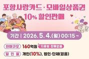 경북팩트뉴스 남유신 기자 | 포항시가 침체된 민생경제에 활력을 불어넣기 위해 내달 4일부터 카드형·모바일 포항사랑상품권(포항사랑카드) 160억 원을 10% 할인된 금액으로 판매한다. 시는 올해 들어 이달까지 총 1,230억 원 규모의 포항사랑상품권을 발행한 데 이어, 이번 할인 판매분 160억 원을 유통해 지역 상권 내 소비를 촉진하고 경기 회복 흐름을 이어간다는 방침이다. 특히 시는 고유가·고물가로 인한 시민들의 생활 안정을 위해 지급하는 고유가 피해지원금의 지급수단에 포항사랑카드를 포함해 사용 편의를 높였으며, 이번 할인 판매를 병행해 지역 내 소비 활성화를 유도하고 자금의 역외 유출을 방지할 계획이다. 이번에 할인 판매하는 포항사랑상품권이 위축된 지역 소비를 촉진해 소상공인의 매출 회복에 도움이 되고 자금의 지역 내 순환 구조를 강화해 지역경제 회복을 견인하는 마중물 역할을 할 것으로 기대된다. 가정의 달을 맞아 제공되는 포항사랑카드 10% 할인 혜택으로 시민들의 가계 부담 완화에도 도움이 될 것으로 보고 있다. 개인 구매 한도는 월 40만 원, 보유 한도는 70만 원이다.