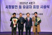 경북팩트뉴스 남유신 기자 | 경상북도는 29일 도청 동락관에서 개최한 ‘2025년 송년 직원 만남의 날’행사에서 창의성과 전문성을 바탕으로, 적극적으로 업무를 처리한 2025년 하반기 적극행정 우수공무원 4명을 시상하고 격려하는 자리를 가졌다. 이번에 선발된 적극행정 우수공무원은 도민 추천과 실·국에서 추천한 우수사례를 대상으로 담당자의 적극성, 창의성, 도정기여도 등을 종합적으로 평가해 ‘경상북도 적극행정지원위원회’의 심의를 거쳐 최종 결정됐다. 최종 선발된 우수공무원과 주요실적을 보면, AI데이터과 이근호 사무관(행정5)은 민간기업 참여 포기로 유찰된 정부 공모 사업을 민간 투자로 전환해 글로벌 ECO-AI 데이터센터(2조원, 600명 고용)를 유치해 지역 AI 산업의 핵심 거점을 확보했다. 이번 실적은 정부 공모 참여 실패를 지역 투자 기회로 바꾼 우수사례로 오픈AI 수요 기반의 AI데이터센터를 올해 12월 착공을 목표로 행정절차와 투자유치를 본격화하고 있다. 외국인공동체과 이한솔 주무관(행정6)은 경상북도가 최초 제안한 광역형비자 사업을 전격 시행했다. 광역형 비자는 지방정부가 필요한 인재를