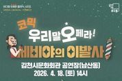 경북팩트뉴스 남유신 기자 | 김천시 문화예술회관은 온 가족이 함께 웃으며 즐길 수 있는 우리말 코믹 오페라 '세비야의 이발사'를 오는 4월 18일, 김천시문화회관(남산동)에서 개최한다. 이번 공연은 예술지원센터의 ‘2026년 공연예술 지역유통 지원사업’으로 선정되어 국비를 지원받아 개최되며, 전석 1만 원이라는 저렴한 가격으로 제공된다. 우리말 코믹 오페라 '세비야의 이발사'는 원곡 전곡을 재치 있는 한국어로 번안하여 누구나 이해할 수 있는 가사로 재해석한 것이 특징이다. 여기에 슬랩스틱 코미디와 패러디, 현실감 있는 대사들을 더해 관객들의 몰입도를 높이고 오페라에 대한 심리적 거리감을 크게 낮췄다. 예매는 4월 3일 14시부터 티켓링크 또는 김천시문화예술회관 누리집에서 가능하며, 김천시민 30%, 김천시 다자녀가정 40% 할인 등을 받을 수 있다. 자세한 사항은 김천시 문화예술회관 누리집 공지사항을 확인하거나, 문화예술회관 사무실로 문의하면 된다.