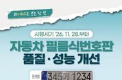 경북팩트뉴스 이경원 기자 | 자동차 필름식 번호판 품질·성능 개선 (시행시기 2026.11.28.부터) - 품질 강화: 필름 접착력·연료 저항성 등 시험기준 강화 - 야간 시인성: 반사 성능 최대 6배 강화 - 보증 기간: 최초 발급일로부터 5년 무상 보증