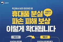 경북팩트뉴스 이경원 기자 | 학교에서 보관·관리하던 중 휴대품 분실·파손 피해 보상 이렇게 확대됩니다. (시행일자 2026.4.1.) ■ 개정 전 보상대상 휴대품: 3종 - 휴대폰, 태블릿PC, 노트북 - 보상한도 100만 원 ■ 개정 후 보상대상 휴대품 확대: 3종 → 5종 - 휴대폰, 태블릿PC, 노트북 (신규) 무선이어폰, 스마트워치 - 보상한도 확대 100만 원 → 200만 원