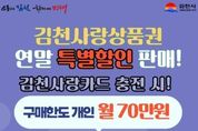 경북팩트뉴스 남유신 기자 | 김천시는 오는 12월 한 달 동안 김천사랑상품권을 18% 특별 할인 판매한다고 28일 밝혔다. 시는 이번 특별 할인판매로 연말 소비 촉진을 비롯해 침체된 지역 상권 에 활력을 불어넣고, 지역경제 회복에도 긍정적인 영향을 미칠 것으로 기대하고 있다. 특히, 시는 12월 한 달 동안 진행되는 이번 특별 할인판매 기간에 한하여 개인 구매 한도를 월 70만 원으로 확대해 더 많은 시민이 혜택을 누릴 수 있도록 할 방침이다. 이번 연말 특별 할인판매로 연말 선물·장보기 등 가계 지출이 늘어나는 시기에 실질적인 가계 부담을 덜어주는 동시에 지역 내 소비 확대로 이어져 지역 상권 전반에 크게 도움이 될 전망이다. 다만, 예산 소진 시 특별 할인판매 기간 중이라도 조기 종료될 수 있으니, 혜택을 놓치지 않으려면 빠른 참여가 필요하다. 김천시 관계자는 “연말을 맞아 진행하는 김천사랑상품권 특별 할인판매가 상권 활성화와 지역경제에 실질적인 보탬이 되기를 바라며, 많은 시민이 혜택을 누리고, 조금 더 따뜻한 연말을 보내는 데 도움이 됐으면 한다.”라고 말했다.
