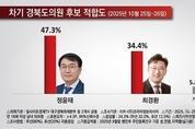 경북팩트뉴스 남유신 기자 | 내년 6월 치러질 제9회 전국동시지방선거 경북도의원(울릉군 선거구) 출마 예정자 양자 대결에서 정치 신인 정윤태 전 울릉읍장이 4선 관록의 최경환 울릉군의원을 오차범위(±4.3%포인트) 밖에서 앞선다는 여론 조사 결과가 나왔다. 영남이코노믹 등에 따르면 정윤태 전 울릉읍장이 47.3%, 최경환 현 울릉군의원 34.4%로 나타났다. 기타인물 5.8%, 없음·모름 12.5%였다. 정윤태 전 울릉읍장은 30·50대를 제외한 모든 세부 항목(지역·성별·연령) 조사에서 최경환 울릉군의원에 앞섰다. 세부 항목 조사 결과를 보면 △울릉읍 정윤태 48.1%, 최경환 33.7% △서면·북면 정윤태 45.5%, 최경환 35.9% △남성 정윤태 47.8%, 최경환 37.1% △여성 정윤태 46.6%, 최경환 30.7% △만18세~20대 정윤태 42.0%, 최경환 29.4%, △30대 최경환 42.3%, 정윤태 36.4% △40대 정윤태 49.8%, 최경환 35.0% △50대 최경환 43.1%, 정윤태 42.2% △60대 정윤태 53.9%, 최경환 32.6% △70세 이상 정윤태 50.5%, 최경환 25.7%였다. 이번 조사는 영남이코노믹, 딜사이트경