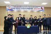 경북팩트뉴스 남유신 기자 | 청도군농업인단체협의회는 1월 13일 청도농협농산물유통센터 2층 대회의실에서 2026년 신년교례회를 개최하고, 새해 청도 농업의 발전과 농업인 상생 협력을 다짐하는 뜻깊은 시간을 가졌다. 이날 행사에는 군내 15개 농업인 단체 100여 명이 참석해 새해 인사를 나누고 청도 농업의 미래 비전에 대해 의견을 공유했다. 신년교례회는 국민의례를 시작으로 ▲ 신년 인사 ▲ 내빈 축사 ▲ 시루떡 절단 ▲ 기념촬영 순으로 진행됐으며, 참석자들은 고령화·기후변화·농업경영비 상승 등 농업 현안에 공동 대응하고 농업 경쟁력 강화를 위해 힘을 모을 것을 다짐했다. 청도군 농업인단체협의회 회장 박희수는 “2026년 변화하는 농업 환경 속에서 농업인의 역할이 더욱 중요한 한 해가 될 것”이라며 “농업인단체 간 협력을 강화하고, 청도 농업의 지속가능한 발전을 위해 앞장서겠다”고 말했다. 김동기 청도군 부군수는 “청도 농업은 농업인 여러분의 땀과 노력으로 성장해왔다”며 “앞으로도 청도 지속적인 농업 발전과 농업인 소득 증대를 위해 행정 역량을 집중하겠다”고 밝혔다.