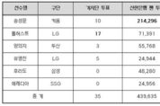 경북팩트뉴스 남유신 기자 | 키움 송성문이 2025 신한 SOL뱅크 KBO 리그 8월 월간 MVP로 선정됐다. 송성문 개인 첫 월간 MVP 수상이자, 키움 소속 선수로는 2022년 6월 이정후 이후 약 3년 만이다. 송성문은 기자단 투표 총 35표 중 10표(28.6%), 팬 투표 43만 9,635표 중 21만 4,296 표(48.7%)로 총점 38.66점을 받아, 기자단 투표 17표, 팬 투표 7만 1,391표로 총점 32.41점을 기록한 LG 톨허스트를 제쳤다. 키움의 중심 타자로 활약 중인 송성문은 8월 한 달 동안 주요 타격 지표 상위권을 휩쓸었다. 안타(42개), 득점(28개), 장타율(0.726) 부문에서 1위를 차지했고, 타율(0.396)부문 2위, 출루율(0.463) 부문은 3위를 기록했다. 여기에 홈런(8개) 부문 4위, 타점(22개) 부문 5위를 기록하며 대부분의 공격 지표에서 두각을 나타냈다. 또한 도루 6개로 공동 5위에 올라 타격뿐만 아니라 주루에서도 뛰어난 활약을 펼치며 키움의 공격을 이끌었다. 8월 15일 고척 KT전에서는 우측 담장을 넘기는 홈런으로 시즌 20홈런을 완성하며, 데뷔 첫 20홈런-