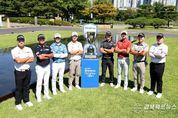 경북팩트뉴스 남유신 기자 | ‘제41회 신한동해오픈(총상금 15억 원, 우승상금 2억 7천만 원)’의 개막을 하루 앞둔 10일(수) 대회가 개최되는 인천 송도 소재 잭 니클라우스 골프클럽 코리아 어반, 링크스 코스(파72. 7,471야드)에서 대회의 성공 개최를 기원하는 포토콜이 진행됐다. 이날 포토콜에는 올 시즌 2승을 기록하고 있는 현재 제네시스 포인트 1위 옥태훈(27.금강주택), ‘백송홀딩스-아시아드CC 부산오픈’ 챔피언 김홍택(32.DB손해보험)을 비롯해 ‘코오롱 제67회 한국오픈’에서 우승한 사돔 깨우깐자나(27.태국), 일본의 ‘골프 영웅’ 이시카와 료(34.일본), 주최사 신한금융그룹 소속이자 현재 콘페리투어에서 활동하고 있는 김성현(27)과 일본투어에서 활약 중인 송영한(34), ‘국가대표’ 김민수(17.아마추어) 그리고 지난 8월 열린 ‘제2회 신한동해 남자아마추어선수권대회’서 정상에 오른 유민혁(17.아마추어)까지 총 8명의 선수가 참여했다. 포토콜에 참가한 선수들은 클럽하우스 앞에 모여 우승 트로피와 함께 선전을 다짐했다. 옥태훈은 “매 라운드 최선을 다해 플레이 할 것”이라며 “목표는 컷