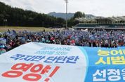 경북팩트뉴스 남유신 기자 | 영양군은 지난 9월 30일 영양공설운동장에서 농어촌 기본소득 시범지역 선정 기원 범군민 결의대회를 열고, 군민 모두의 간절한 염원을 대내외에 표명했다. 이번 결의대회는 취지문 낭독으로 문을 열어 범군민 퍼포먼스로 이어지며 군민들의 하나 된 염원을 드러냈다. 이날 조동만 군정자문위원회 위원장이 낭독한 취지문은 “비어가는 집, 불 꺼진 상점, 줄어드는 아이들의 웃음소리. 영양은 지금 소멸의 문턱에 서 있습니다”라는 절절한 문구로 시작해, 인구감소와 고령화의 위기를 직시하고 농어촌 기본소득을 통해 지역공동체를 되살리자는 메시지를 담아 군민들의 깊은 공감을 이끌어냈다. 이어 영양청우회 이재동 회장과 영양군애향청년회 성문기 회장이 이끈 구호 제창과 범군민 퍼포먼스가 진행됐다. 군민들은 손피켓을 높이 들고 한목소리로 “영양군이 최적지다”를 외치며 간절한 뜻을 모았다.마지막에는 대형 현수막이 펼쳐지며 중앙정부와 정치권을 향한 군민들의 염원을 상징적으로 드러냈다. 오도창 영양군수는 “오늘 함께한 군민들의 목소리에는 영양의 미래를 지키려는 간절한 마음이 담겨 있었다”며, “이 염원이 반