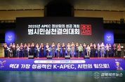 경북팩트뉴스 남유신 기자 | 경주시가 2025년 APEC 정상회의 개막을 한 달 앞두고 시민의 힘을 하나로 모아 성공개최 의지를 다졌다. 시는 30일 경주실내체육관에서 ‘2025년 APEC 정상회의 성공개최 범시민실천결의대회’를 성황리에 개최했다고 밝혔다. 이번 행사에는 APEC 범시도민지원협의회(공동회장 박몽룡·이상걸) 소속 회원을 비롯해 유관기관, 시민단체, 자원봉사자 등 경주시민 3천여 명이 참석해 시민과 함께하는 APEC의 진정한 의미를 되새겼다. 특히 주낙영 경주시장을 비롯해 김석기 국회 외교통일위원장, 이동협 경주시의장, 최병준 경북도의회 부의장을 비롯해 시·도의원 전원이 참석해 시민과 함께 손님맞이 실천 결의를 다지고 성공 개최를 향한 열기를 더했다. 행사장 내부에는 시민단체들이 자체 제작한 손님맞이 실천 결의 현수막이 곳곳에 걸려 있어, APEC 성공개최를 향한 시민들의 뜨거운 참여 의지를 생생하게 보여주었다. 본행사에 앞서 참석자들은 ‘APEC 시민 10대 실천과제’를 함께 되새기며, 모든 시민이 APEC의 주인으로서 행동할 때 성숙한 시민의식과 지속가능한 경주를 만들어