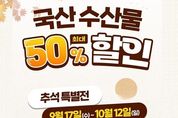 경북팩트뉴스 이경원 기자 | ■ 온·오프라인으로 국산 수산물 구매시 최대 50% 할인 받으세요 - 9월 17일(수)~10월 12일(일) (오프라인) emart, SAVE ZONE, GS리테일, 농협하나로마트, LOTTE Mart - 총 19개 업체 계산시 자동 할인 적용 (온라인) coupang, Gmarket, CJONSTYLE, kakao, SSG.COM, 11번가 - 총 25개 쇼핑몰 할인쿠폰 발급 후 적용 ■ 수산대전 추석 특별전 할인품목 명태, 고등어, 오징어, 갈치, 참조기, 마른멸치, 김, 전복, 꽃게, 광어 참여업체 등 자세한 내용은 대한민국 수산대전에서 확인하세요! ■ 최대 45% 할인! 추석맞이 민생선물세트 - 손질전복 세트 - 갈치·고등어 세트 - 굴비 세트 - 해품은 김 선물 세트 - 꼬막장 세트 - 참빛멸치 1호 수협쇼핑 또는 오프라인 매장(바다마트)에서 구매할 수 있습니다.