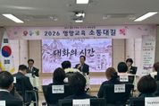 경북팩트뉴스 남유신 기자 | 경상북도영양교육지원청은 2026년 3월 11일, 교육지원청 대회의실에서‘2026 영양교육 소통대길 톡’ 행사를 개최하고 교육공동체와 함께하는 소통과 협력의 뜻깊은 시간을 가졌다. 이날 행사에는 임종식 경상북도교육청 교육감을 비롯해 박근호 교육장, 도교육청 관계자, 관내 초·중·고 교장단, 학교운영위원장협의회, 학부모회, 녹색어머니회, 학생상담봉사자회, 마을학교 관계자 등 교육공동체 구성원 30여명이 참석했다. 박근호 교육장은 주요 업무 보고에서 특색교육, 학교지원 및 교육환경 개선, 현안 사항 순으로 보고했다. 특색교육으로 ‘빛나는 문향의 얼잇기’, ‘영양사랑 나라사랑 마음 키우기’, ‘해달뫼 생태환경 교육’을 추진하고 ‘해달뫼 공동교육과정’, ‘마을학교 지원’, ‘특수교육대상학생 방과후 확대’ 등의 다양한 학교교육 지원과 영양초 학교복합시설과 영양도서관 개관 등의 교육환경 개선 성과를 강조했다. 임종식 교육감은 “오늘 소통대길 톡은 교육공동체가 함께 지역 교육에 대해 함께 고민하고 해결 방향을 모색하는 소중한 시간이었다”며 “앞으로도 더욱 교육공동체와 소통하면서 정책