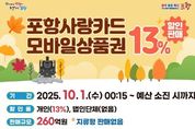 경북팩트뉴스 남유신 기자 | 포항시는 추석 명절 지역경제 활력 제고를 위해 내달 1일부터 카드형·모바일 포항사랑상품권(이하 포항사랑카드)을 260억 원 규모로 13% 할인 판매한다. 시는 지난 9일 발행한 600억 원 규모 상품권이 완판됨에 따라, 내달에도 13% 할인 판매를 통해 시민과 소상공인들에게 직접적인 혜택을 제공하고, 지역 골목상권 소비 촉진의 마중물 효과를 이어가겠다는 방침이다. 올해 포항시는 당초 목표보다 500억 원 확대한 총 3,000억 원 규모의 상품권을 발행한다. 연말까지 매월 초 상품권을 발행하며 13% 할인율을 유지해 지역 자금 역외 유출을 막고 소상공인 매출 증대, 지역경제 선순환 구조 강화에 기여할 계획이다. 개인별 구매 한도는 월 50만 원, 보유 한도는 100만 원으로 조정된다. 개인을 대상으로만 할인하고, 지류형은 판매하지 않는다. 상품권은 10월 1일 0시 15분부터 모바일 앱 ‘iM샵’에서 충전할 수 있으며, 104개 판매대행 금융기관 영업점에서도 영업시간 내 충전이 가능하다. 포항사랑카드는 실물카드 결제 외에도 ▲삼성페이 ▲네이버페이 QR결제 ▲모바일 앱 iM샵 QR결제 등 다양한 결제 수단을 지원한다. 지역 내 2만