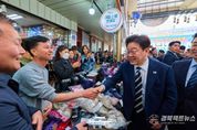 경북팩트뉴스 황혜경 기자 | 이재명 대통령은 25일 오후 한국항공우주산업(KAI)에서 열린 KF-21 양산 1호기 출고식에 참석한 뒤 경남 진주시에 위치한 진주중앙시장을 깜짝 방문해 민심을 청취했다. 진주중앙시장은 1884년 개장한 유서 깊은 전통시장으로, 진주 지역의 대표 상업 거점으로 자리하고 있다. 이재명 대통령은 후보 시절이던 지난해 5월에도 이곳을 방문한 바 있다. 상인들과 주민들은 예고 없이 깜짝 등장한 이재명 대통령을 환호와 박수로 맞이했다. 현장에서는 “이재명 대통령 최고!”, “사랑합니다”, "감사합니다", “멋있어요”, “고생 많으십니다” 등 다양한 응원의 목소리가 이어졌다. 이재명 대통령은 시민들과 일일이 눈을 맞추며 인사했고, 셀카 촬영에 응했다. 특히 아이들을 지나치지 않고 몇 살인지 묻는 등 세심하게 소통하며 함께 사진을 찍었다. 이재명 대통령은 시장 곳곳을 둘러보고, 상인들에게 장사가 잘되는지 묻는 등 현장의 목소리를 청취했다. 이재명 대통령은 상추와 애호박 등을 현금과 온누리상품권으로 구입했고, 귤과 꼬치전, 호떡, 엿, 딸기 등을 즉석에서 맛본 뒤 구입했습