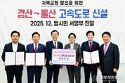 경북팩트뉴스 남유신 기자 | 경산시는 17일 국회 본관 소회의실에서 조지연·권영진 국회의원, 조현일 경산시장, 김학홍 경북도 행정부지사, 안효대 울산시 경제부시장 등 관계 지자체 및 국회 관계자 20여 명이 참석한 가운데 경산~울산 고속도로 신설의 국가 계획 반영을 건의하며, 범시민 서명부와 3개 지자체장의 공동선언문을 국토교통부에 공식 전달했다. 이날 경산시는 경산~울산 고속도로 신설을 촉구하는 범시민 서명부(160,123명)와 함께, 경북도·울산시·경산시가 공동으로 뜻을 모은 선언문을 전달하며, 김윤덕 국토부 장관에게 사업의 필요성과 제3차 고속도로 건설계획 반영을 요청했다. 이와 함께 권영진 국회의원도 함께 참석하여 뜻을 모았다. 경산~울산 고속도로는 영남 내륙과 동남권 산업권을 직접 연결하는 핵심 교통축으로, 이동 거리 단축과 물류 효율성 제고를 통해 지역 간 산업 연계 강화와 초광역 경제권 형성에 기여할 것으로 기대되고 있다. 특히 자동차부품 산업이 집적된 경산과 완성차 산업의 중심지인 울산을 직결함으로써, 기존 우회·경유 구조로 인한 물류 비효율을 개선하는 기반이 될 수 있다는 평가다.