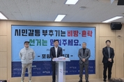 경북팩트뉴스 남유신 기자 | 포항시민연대가 6·3 지방선거를 앞두고 포항시장 선거 과정에서 확산되고 있는 비방과 흑색선전을 강하게 비판하며 공정선거를 촉구하고 나섰다. 포항시민연대는 25일 발표한 성명서를 통해 “최근 포항시장 선거 공천 과정이 컷오프를 둘러싼 반발과 갈등으로 번지며 지역사회에 깊은 우려와 피로감을 주고 있다”고 밝혔다. 이어 “근거 없는 의혹 제기와 비방, 마타도어식 흑색선전은 결코 정당화될 수 없다”며 “이는 진실 규명이 아닌 혼란을 키우고 시민을 분열시키는 결과를 초래할 뿐”이라고 지적했다. 시민연대는 이번 사안을 특정 정당이나 인물의 문제가 아닌 “포항 시민 전체의 신뢰와 미래가 걸린 문제”로 규정하며 사태의 심각성을 강조했다. 또 “선거는 시민을 위한 축제이자 미래를 선택하는 과정이어야 한다”며 “정책과 비전으로 경쟁하는 건강한 선거 문화가 필요하다”고 밝혔다. 특히 “지금 포항은 경제 위기와 인구 감소, 산업 전환 등 복합적인 과제를 안고 있다”며 “이럴 때일수록 갈등을 부추기는 정치가 아닌 문제 해결 중심의 책임 있는 리더십이 요구된다”고 강조했다. 아울러 “감정적 대응이 아닌 성숙한 정치 문화와 공동체 통합을 이끄는 리더십이 필