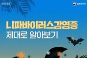 경북팩트뉴스 이경원 기자 | ■ 제1급 감염병 '니파바이러스감염증'이란? 니파바이러스(Nipah virus) 감염에 의해 사람과 동물 모두 감염될 수 있는 인수공통감염병입니다. 인체 감염시 40~75%의 높은 치명률을 보이나, 백신과 치료제가 없어 감염되지 않도록 주의해야 합니다. ■ 니파바이러스감염증 어떻게 감염되나요? - 감염된 동물과 직접 접촉 - 오염된 식품 섭취(대추야자수액 등) - 환자의 체액 접촉(비말, 소변 등) 자연숙주인 과일박쥐(fruit bat) 서식지 중심으로 산발적으로 발생하며, 니파바이러스에 감염된 동물과 접촉한 사람이나 오염된 식품을 먹은 가축, 환자의 체액에 직접 노출된 사람에게 전파될 수 있습니다. ■ 니파바이러스감염증 어디서 발생하나요? - 인도: 2001~2024년, 환자 104명 발생(76명 사망, 치명률 73%) - 방글라데시: 2001~2024년, 환자 343명 발생(245명 사망, 치명률 71%) 최근 인도, 방글라데시에서 지속 발생, 해당 국가 여행 시 감염 예방수칙을 준수하여 주시기 바랍니다. ■ 니파바이러스감염증 주요 증상은? 초기에 발열,