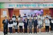 경북팩트뉴스 남유신 기자 | 경상북도상주교육지원청에서는 11. 17. 16시에 3층 대회의실에서 동일문화장학재단 장학증서 수여식이 개최됐다. 행사에는 장학생 63명과 장학회 관계자 및 내빈들이 참석했다. 동일문화장학재단은 조양 오일용 선생의 유지에 의해 설립되어 (주)동일산업(대표: 오순택)에서 운영하는 재단법인으로, ㈜동일산업의 창업주인 고(故)오일용 선생께서 고향의 청소년들에게 꿈과 희망을 전하라는 유지를 받들어 2010년부터 매년 상주교육지원청에 장학금을 기탁해왔다. 올해에도 관내 초, 중, 고등학생 중 가정 형편이 어렵고 학습 의지가 높은 학생 63명(초 30명, 중 18명, 고 15명)을 선발하여 초등학생 50만원, 중학생 70만원, 고등학생 100만원씩 총 4,260만원의 장학금을 전달했다. 동일문화장학재단은 2010년부터 올해까지 총 4억 7천여 만원의 장학금을 전달했다. 이날 그간의 공로에 대해 오순택 동일문화장학재단 이사장에게 교육청 감사패가 증정됐으며, 장학생들에게 장학증서 수여를 마친 오순택 이사장은 인사말에서“오늘 여기 서있는 학생들 모두 높은 이상과 큰 뜻을 세