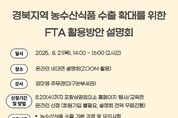 경북팩트뉴스 남유신 기자 | 포항상공회의소(회장 나주영) 경북동부FTA통상진흥센터는 경북지역 농수산식품 수출기업의 실무자 역량 강화를 위해 오는 21일 오후 2시, 「경북지역 농수산식품 수출 확대를 위한 FTA 활용방안 설명회」를 온라인 비대면(ZOOM) 방식으로 개최한다. 이번 설명회는 경북동부·경북센터와 대구본부세관이 공동으로 주관하며, 도내 농수산식품 수출기업 및 수출 관심기업을 대상으로 FTA 활용도를 높이기 위해 맞춤형으로 마련됐다. 강의는 대구본부세관 수출입기업지원센터 강미영 주무관이 맡아 ▲농수산식품 수출 기본 과정 및 유의사항 ▲FTA 협정별 활용방안과 주요 내용 ▲수출 관련 통상 이슈 및 대응 방안 ▲질의응답 순으로 진행된다. 센터 관계자는 “이번 설명회를 통해 실무자들의 수출 역량을 강화하고, 경북지역 농수산식품의 해외시장 진출을 적극 지원할 계획”이라고 밝혔다.