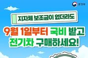 경북팩트뉴스 이경원 기자 | 지자체 보조금이 없더라도 9월 1일부터 국비 받고 전기차 구매하세요! ■ 전기차 구매 시 개인부담 비용은? 차량 가격 - (지자체 보조금 + 국비 보조금) = 개인 부담금. 차량 가격(5000만 원) - 지자체 보조금(200만 원) + 국비 보조금(580만 원) = 개인 부담금(약 4200만 원) ※ 국비 보조금은 차종별로 상이. 하지만! 지자체 보조금이 소진되었다면? 차량가격 = 개인 부담금 (※국비 보조금도 없음) 차량 가격(5000만 원) = 개인 부담금(5000만 원) ■ 9월 1일부터 달라집니다! 지자체 보조금이 소진되더라도 국비 보조금을 받을 수 있습니다! 차량 가격(5000만 원) - 국비 보조금(580만 원) = 개인 부담금(4420만 원) ※ 국비 보조금은 차종별로 상이. ■ 국비 보조금 신청 신청기간: 2025년 9월 1일(월)~국비 보조금 소진 시까지. 대상차량: 전기승용차. 신청방법: 무공해차 통합누리집. 환경부는 깨끗한 공기와 탄소중립 실현을 위해 전기차 보급에 최선을 다하겠습니다!