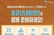 경북팩트뉴스 이경원 기자 | 40대 이상 재직자(퇴직예정자), 구직자라면? 중장년내일센터와 함께 준비하세요! - 생애경력설계 프로그램 : 직업역량, 가치관 분석 등 미래 경력 대안 탐색 지원 - 전직스쿨 프로그램 : 변화 관리 및 취업·전직 가능성 제시 - 재도약 프로그램 : 구직의욕 고취 및 구직 스킬 향상 지원 - 다양한 중장년 정책 안내 : 일경험, 지원금, 일자리 등 정보제공 · 비용 부담 ZERO! 전액 무료! · 간편한 온라인 신청 가능! 전국 38개 중장년내일센터로 오세용!