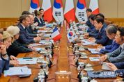 경북팩트뉴스 황혜경 기자 | 이재명 대통령이 3일 한·프랑스 정상회담을 마치고 "원자력·해상 풍력 분야의 협력을 확대해 에너지 안보를 강화하는 한편, 호르무즈 해협 내 안전한 해상수송로 확보를 위해 협력하겠다는 의지도 확인했다"고 밝혔다. 이 대통령은 이날 국빈 방한 중인 에마뉘엘 마크롱 프랑스 대통령과 정상회담 이후 열린 공동언론발표에서 "중동전쟁이 야기한 경제 및 에너지 위기에 공동 대응하고자 정책 경험과 전략을 공유하고, 글로벌 경제의 불확실성 해소를 위해 함께 노력하기로 했다"며 이같이 말했다. 이날 한국과 프랑스는 양국 관계를 '글로벌 전략적 동반자'로 격상하기로 했다. 2004년 '21세기 포괄적 동반자' 관계를 맺은 지 22년 만이다. 또한 양국 관계를 미래지향적 방향으로 발전시키겠다는 확고한 의지가 담긴 공동성명을 채택했으며, 이어 3건의 협정과 11건의 양해각서도 체결했다. 이번 회담의 구체적인 성과에 대한 설명도 이어졌다. 이 대통령은 "지난해 양국 교역액은 150억 달러로 역대 최대치였으나 여기서 만족할 수는 없다"며 "2030년 200억 달러 교역액 달성을 목표
